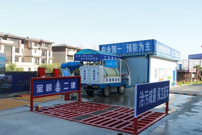 綠色施工落實(shí)到點(diǎn)。從公司到項(xiàng)目部始終將“綠水青山”的環(huán)保重責(zé)力扛在肩,積極響應(yīng),把治污減霾、揚(yáng)塵防治工作作為施工內(nèi)容的重點(diǎn)之一。施工現(xiàn)場(chǎng)門口停放了灑水車和霧炮機(jī),定期對(duì)現(xiàn)場(chǎng)路面進(jìn)行清掃。采用圍擋、裸土覆蓋、垃圾歸類封閉、自動(dòng)洗車臺(tái)等方法控制施工揚(yáng)塵。現(xiàn)場(chǎng)設(shè)置有環(huán)境檢測(cè)儀,與自動(dòng)噴淋系統(tǒng)相連接,達(dá)到治污減霾的效果。